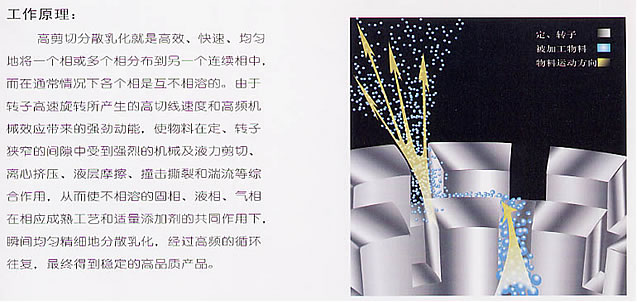 高剪切均質機是目前用的**廣泛的均質機,由轉子或轉子-定子系統構成,工作時高速回轉,在葉片作用下流入的液體通過窄小的縫隙,在很高的剪切力作用下破碎、分散、混合。經過高剪切均質機的物料粒徑可達到1μm,且穩定性好,能耗低,對材質也無特殊要求。