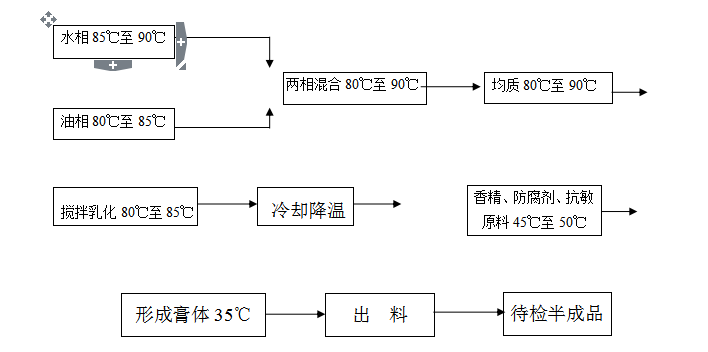 乳液、乳化型洗面奶生產工藝操作規程及工藝流程圖與膏霜相同。