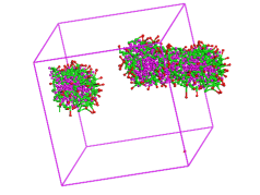 表面活性劑的濃度(摩爾分?jǐn)?shù)為單位)對(duì)聚集體的形態(tài)有顯著的影響。下圖1,2,3依次為相對(duì)含量圖表中的第1,2,3組實(shí)驗(yàn)數(shù)據(jù)所得。由圖可見,表面活性劑濃度的增大有利于表面活性劑在水中形成膠束聚集體。隨著表面活性劑濃度的增加,聚集體由球形向棒狀轉(zhuǎn)變,趨勢(shì)與文獻(xiàn)報(bào)道的一致