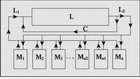 L1.含雜質乳化液流 L2.深化乳化液流 C.內循環 M1、M2…Mn.機床